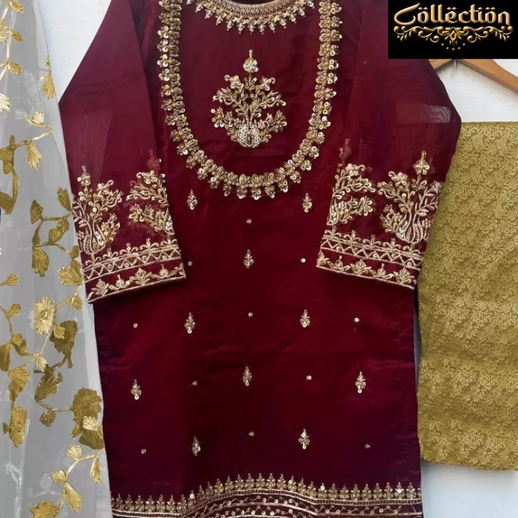 3Pcs Organza Embroidery Suit