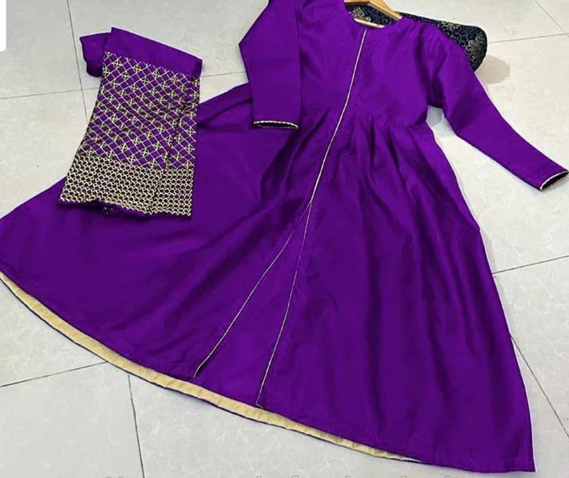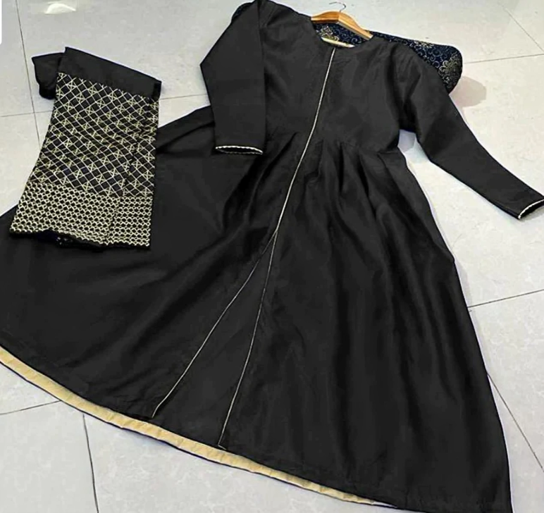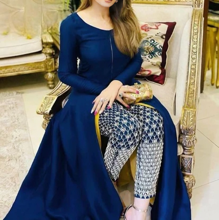 Elaborately Embroidered Long Trouser with Front Piping and Border Brocade Cutwork, paired with Long Maxi - Two-Piece Set