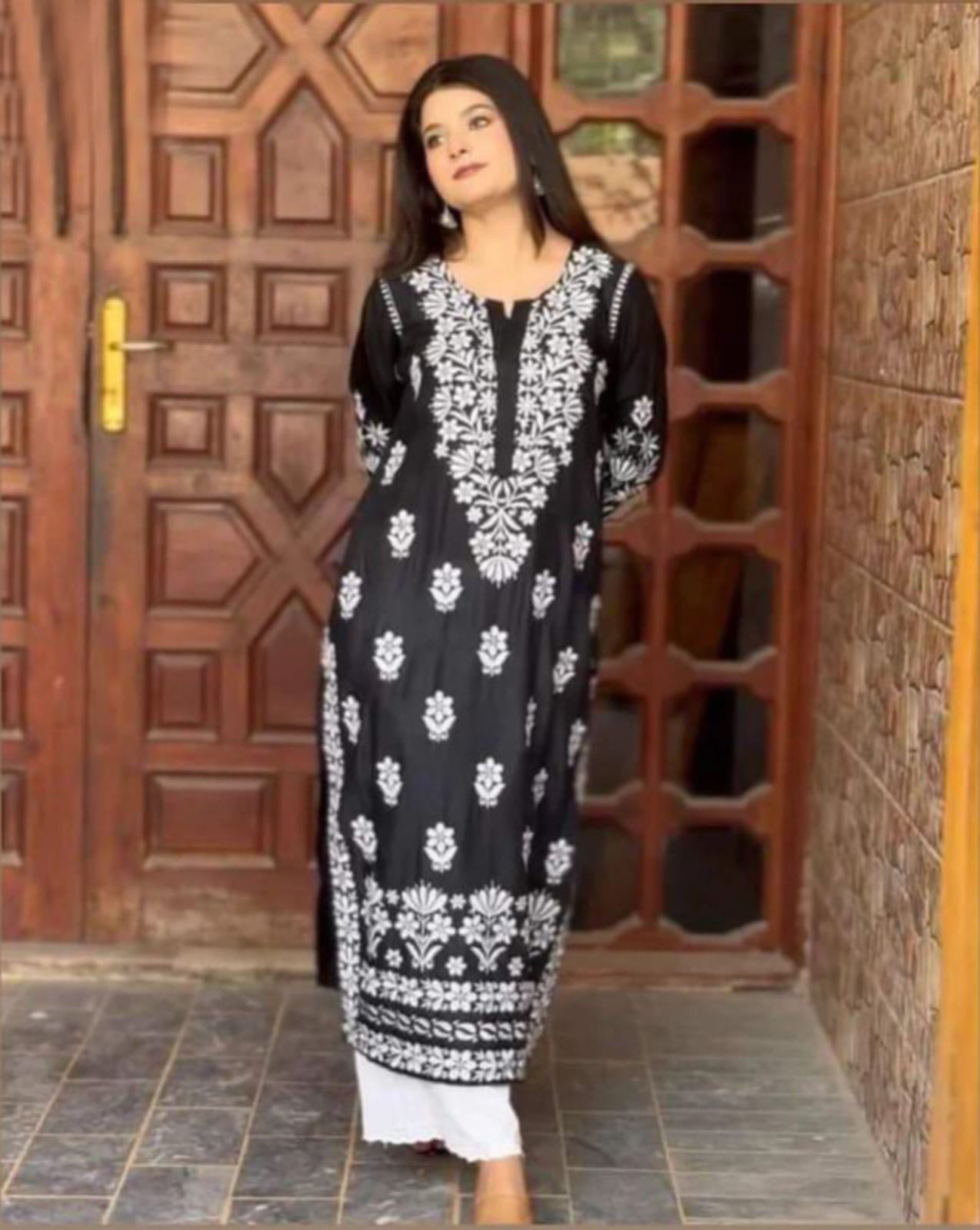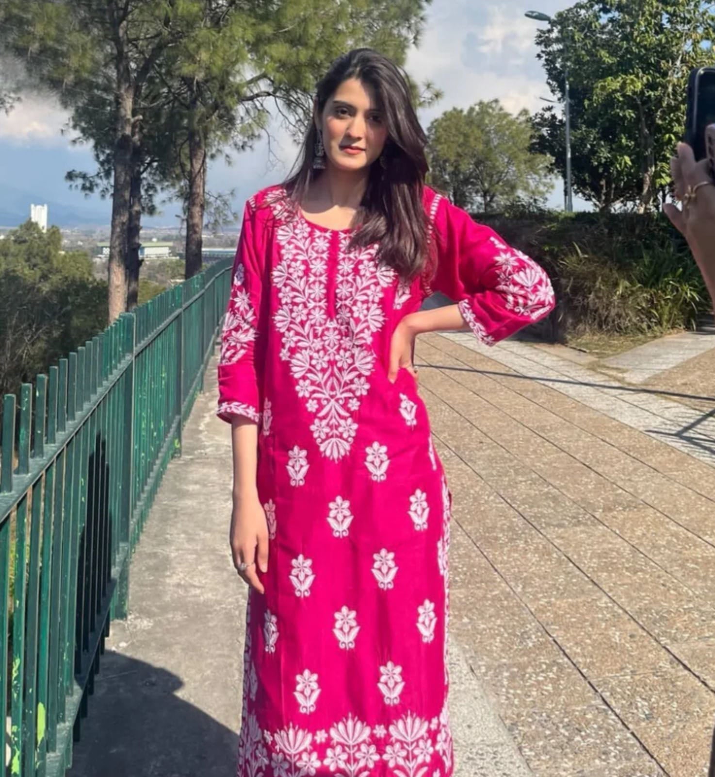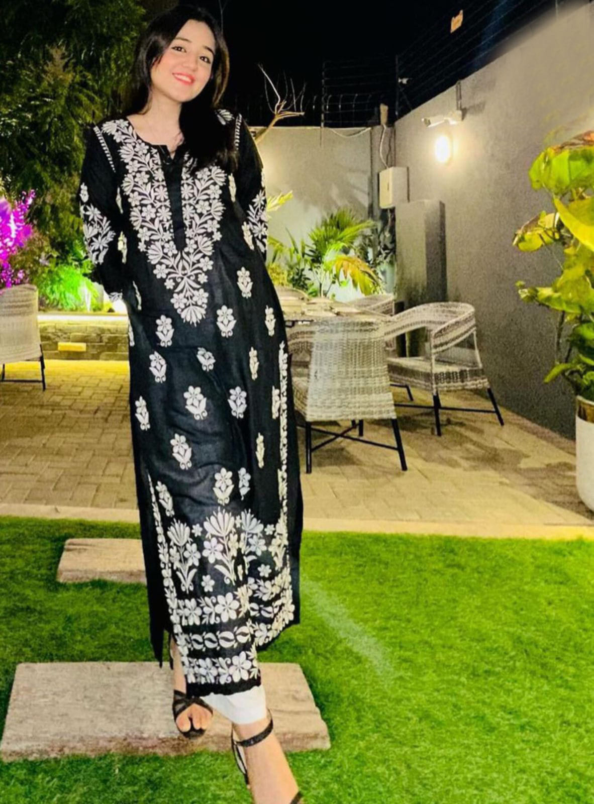 Introducing our latest addition to the collection - the INDIAN LAWN LINEN EMBROIDERED KURTIS! Available in both standard and large sizes, with chest measurements of 21 (standard) and 22 (large), and lengths of 48 and 49 respectively. Choose from a variety of colors including black, white, light purple, pink, and red. Get your hands on these trendy clothes today!
