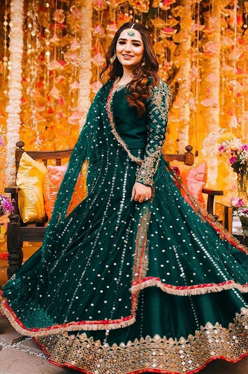 Heavy Embroidery Handwork Mirror Attached Maxi With Pearls Lace Dupatta 3Pcs