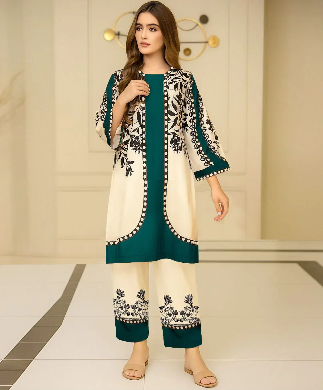 Experience elegance with the LuLuSar Printed Cord-set 2 piece crafted from premium crepe lawn fabric. This set features a digitally printed design that covers both front and back, ensuring a vibrant and durable finish. The breathable, lightweight material offers all-day comfort while maintaining a sophisticated look, perfect for both casual and formal occasions. Elevate your wardrobe with this expertly designed ensemble that combines style and quality seamlessly.