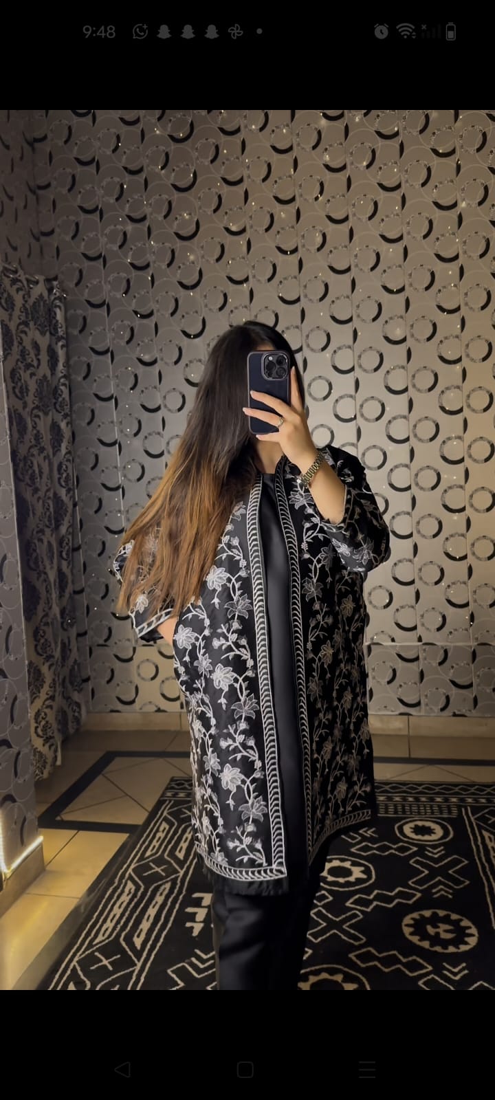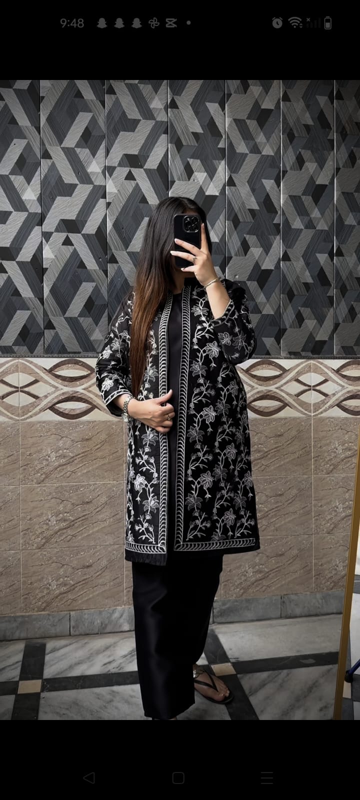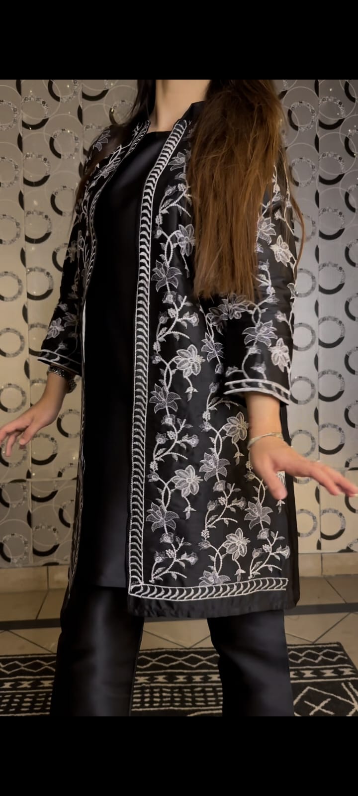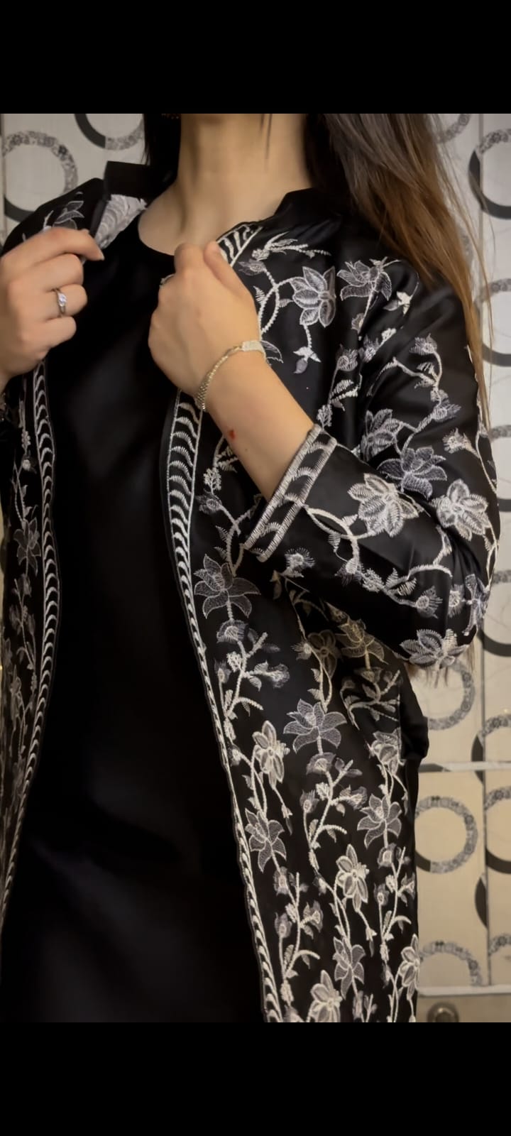 Experience luxury and elegance in our silver 3 piece stitched gown suit. Flawlessly tailored for a perfect fit, this outfit is sure to make a statement at any event. Complete with a gown, top, and pants, this suit is the perfect combination of style and comfort. Dress to impress with our silver Gown 3Pcs pret.