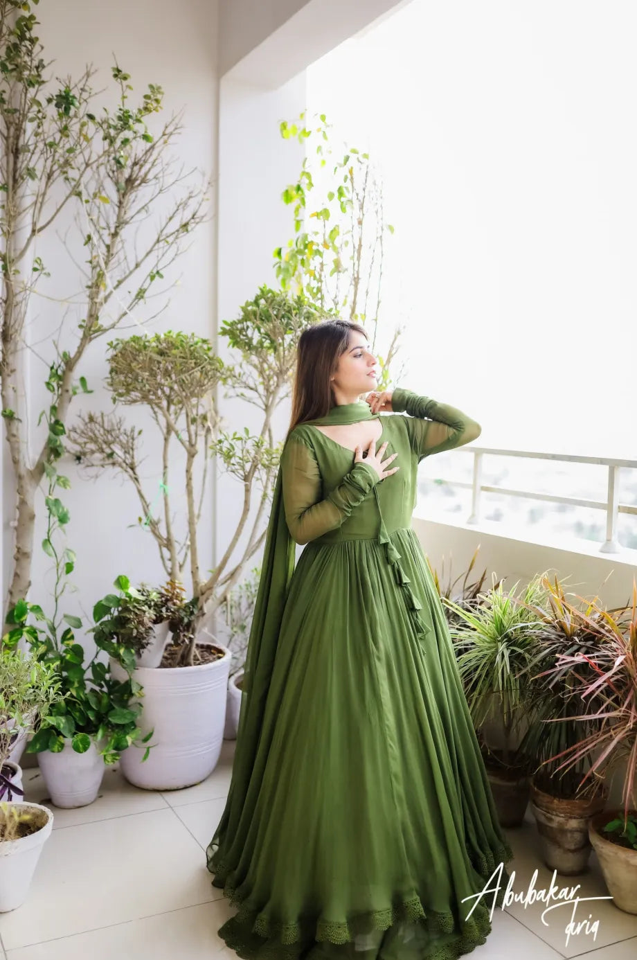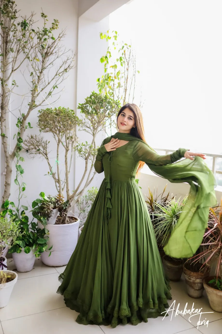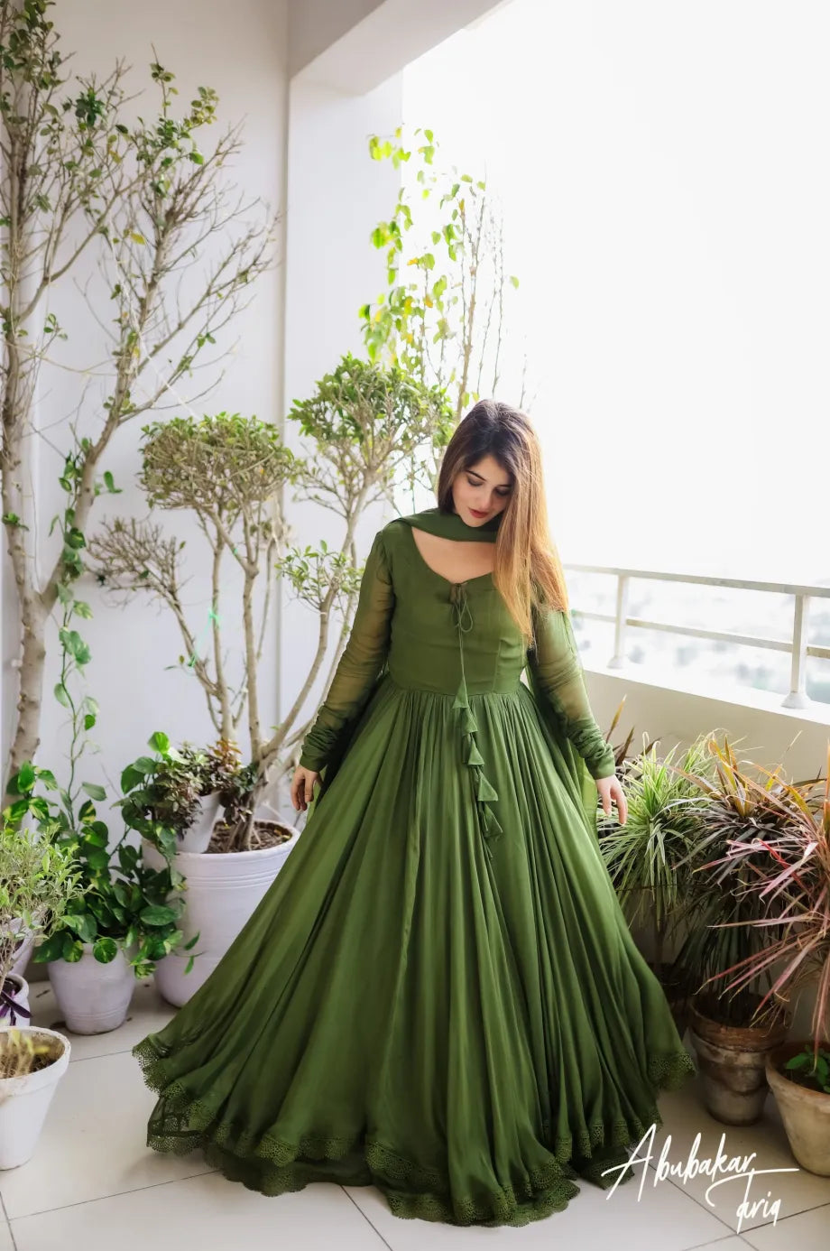 SOLID LIGHT GREEN LONG FLAIR ANARKALI WITH DUPATTA